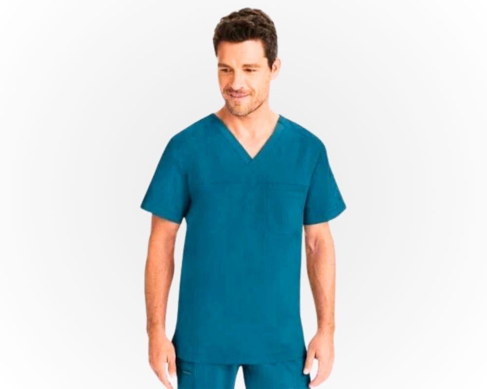 بلوزة جستن من هيلنق هاند بخامة مطاطية لتعطيك حرية واسعة من الحركة خلال يوم عملك الشاق .